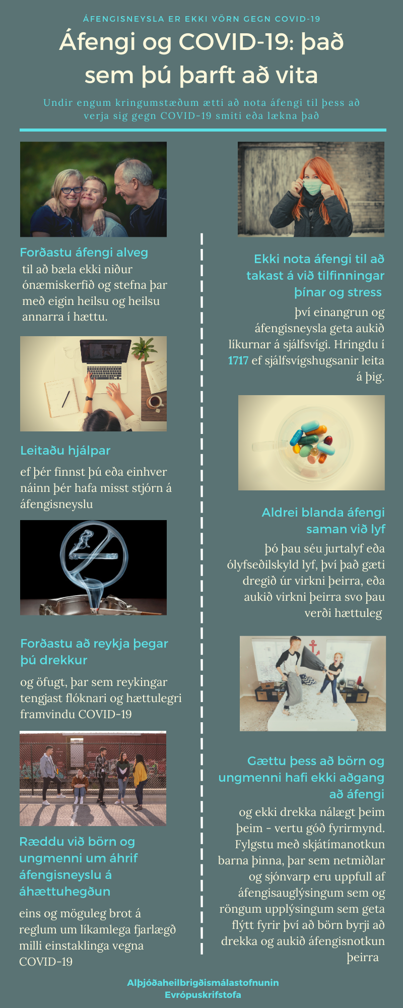 Þessar ráðleggingar koma frá Evrópuskrifstofu WHO og er ætlað að kveða niður þær ranghugmyndir um áfengi og COVID-19 sem nú fara eins og eldibrandur um netmiðla.